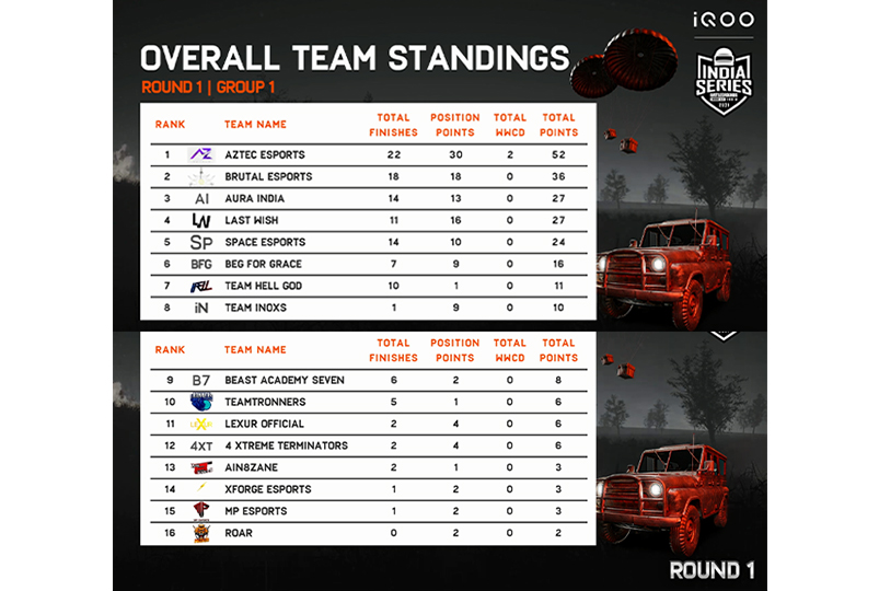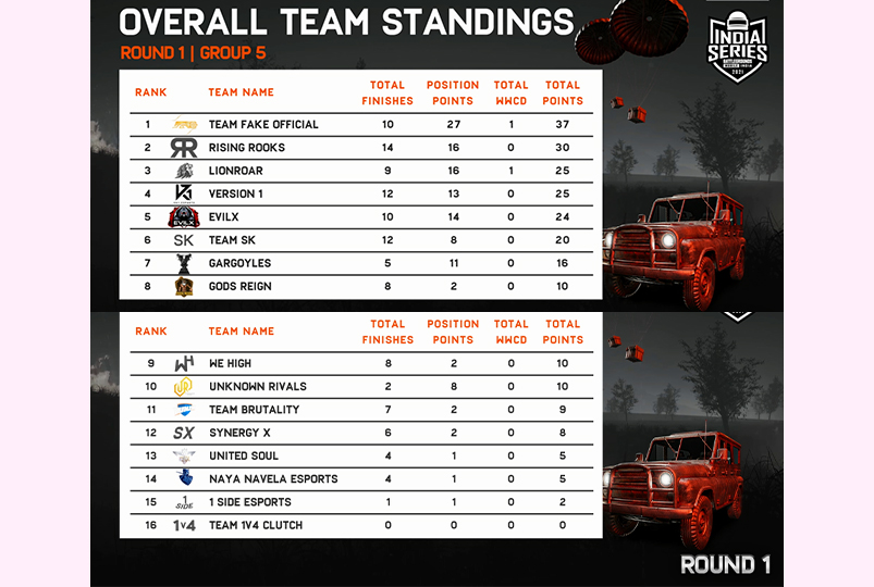 BATTLEGROUND INDIA SERIES 2021 STANDIG: